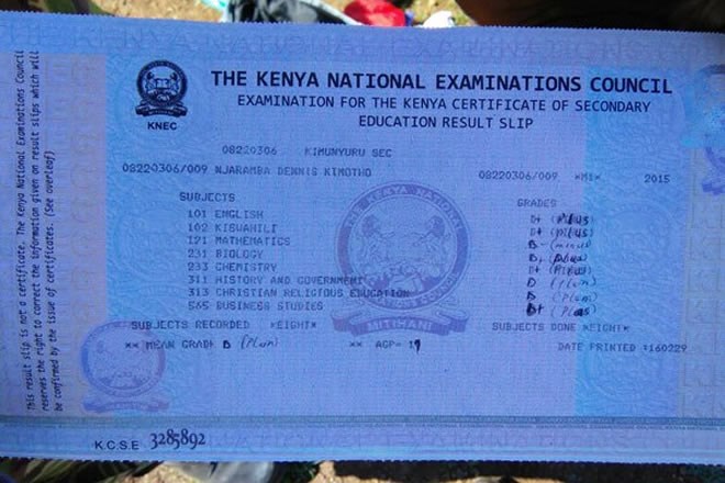 A KDF candidate was arrested on May 16, 2017 in Nyeri after he altered the grades on his KCSE result slip with a pen. PHOTO | NICHOLAS KOMU | NATION MEDIA GROUP