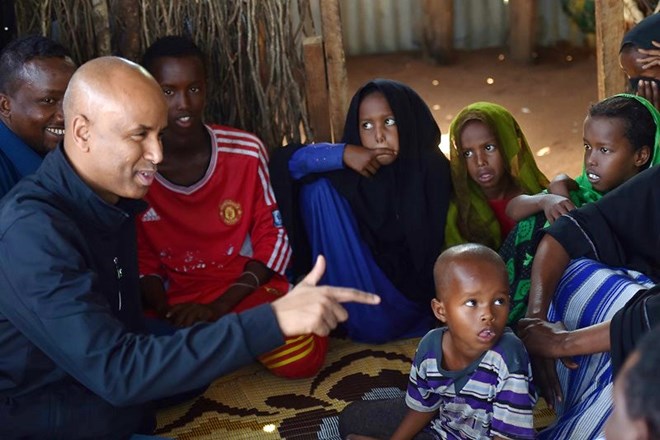Ahmed Hussen visits with a family of Somali refugees in Dadaab refugee camp in northern Kenya, December 2017. TONY KARUMBA/AFP/Getty Images