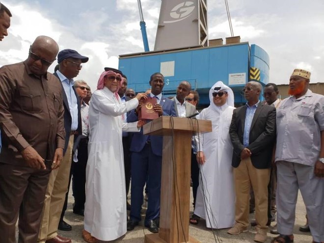 Mogadishu: The Ambassador of Qatar to Somalia Hassan Hamza Asad Hashim handed over the aid from Qatar to the Somali Government. The donation included 30 transport buses and two large cranes and was within the efforts to consolidate joint cooperative relations.