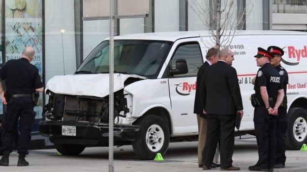 Police said the white rental van mounted the kerb on Yonge Street between Finch Avenue and Sheppard Avenue at about 13:30 local time (17:30 GMT) on Monday and drove into pedestrians along a 2km (1.24 mile) stretch.