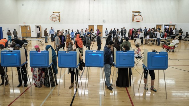 Voters cast their ballots at the Brian Coyle Community Center in Minneapolis on Nov. 8, 2016. Caroline Yang for MPR 2016