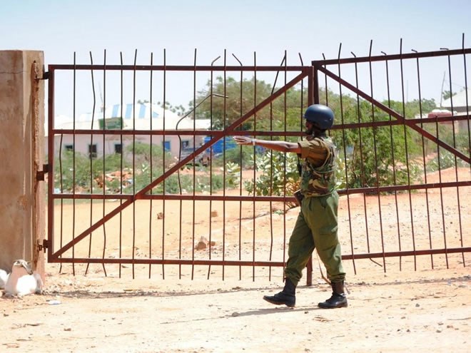 Kenya Defense Forces officer man the main gate to the entrance of Kenya Somali boarder in Mandera