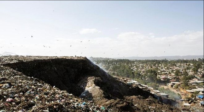 A photo taken March 12, 2017 shows a view of the main landfill of Addis Ababa on the outskirts of the city, where Ethiopia has built a power plant to convert waste into energy