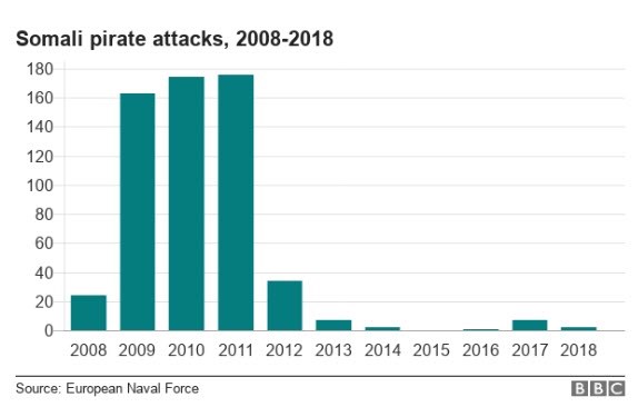 Pirate attacks have now all but stopped, after reaching a peak in 2011.