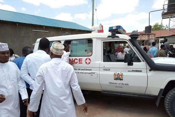 An ambulance carrying bodies of people killed in a Shabaab attack on February 16, 2018 arrives at Wajir Referral Hospital. Police have arrested one suspect in connection with the attack. PHOTO |