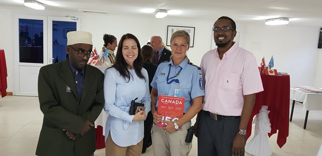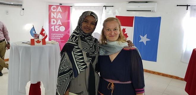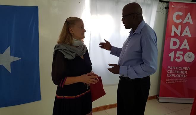 The Canadian Ambassador to Somalia, Sara Hradecky, hosted the event at Halane. Among the guest-list were prominent Somali-Canadians including three Somali cabinet ministers, Shukri Aden Mohamed, Senator in Somalia’s Upper House Chamber of Federal Parliament and civic leaders.