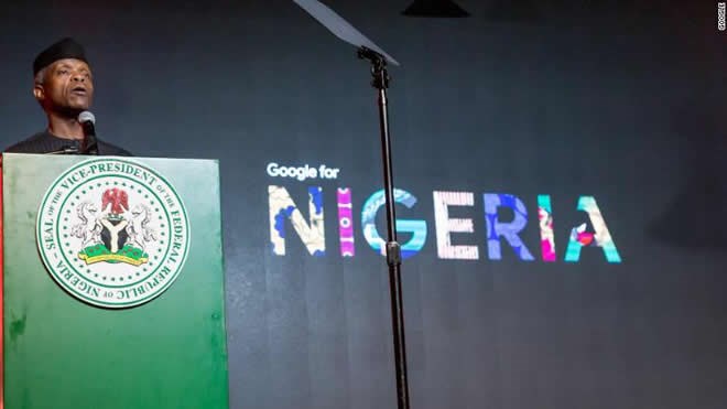 Nigeria's vice president Prof Yemi Osinbajo at the launch of Google Station 'fast Wi-Fi for everyone' initiative in Nigeria on Thursday, July 26, 2018.