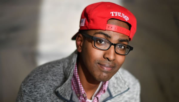 Abdi Mohamed is a Republican Trump voter with a red “Make America Great Again” hat to prove it, and he is a practicing Muslim.