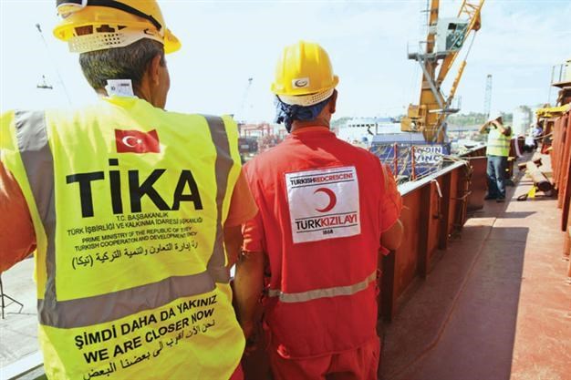 Turkish Cooperation and Coordination Agency (TİKA) and Turkish Red Crescent are seen on board an aid ship in Somalia. FILE