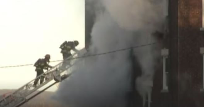 Video from the scene shows smoke billowing from the building. Firefighters said frigid temperatures on Sunday morning hampered their efforts, making the area surrounding the fire icy as crews worked to knock down the blaze.