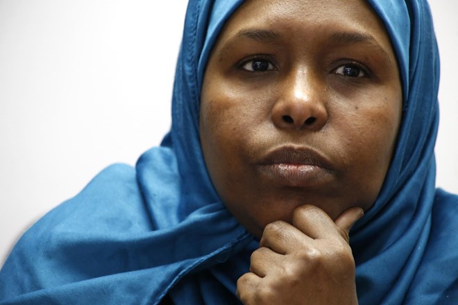 Fadumo Hussein, 45, a Muslim refugee from Somalia, listens during an interview in Columbus, Ohio, on Tuesday, Feb. 20, 2018. Weeks before the announcement of President Donald Trump’s ban on arrivals from several, mostly Muslim countries, Hussein's parents, who are 75 and 76, had been approved for entry to the U.S. Their arrival was scheduled for February 2017. More than a year later, they remain stuck in Uganda, their case on hold. (AP Photo/martha Irvine)