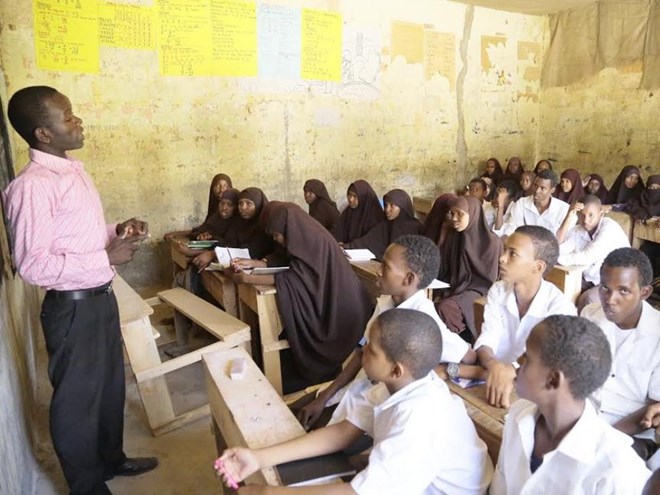 A teacher in class at Alqalam primary school a private school Jan 26 2015 in Mandera town.Photo /File