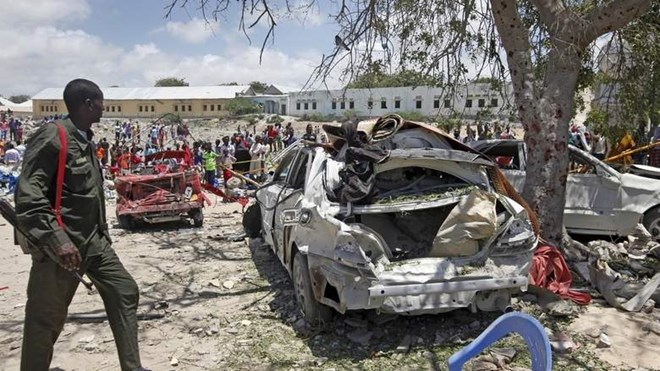 Capt. Mohamed Hussein said the bomber tried to speed through a checkpoint but was stopped by security forces, prompting him to detonate the vehicle near the gate of Howlwadag district headquarters.