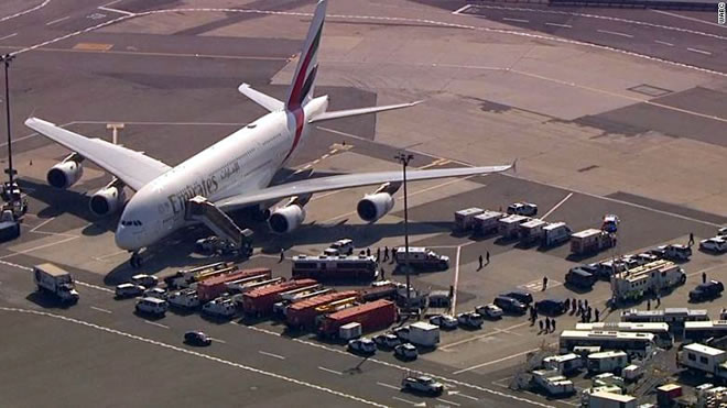 NEW YORK (FOX5NY) - Emergency personnel responded to reports of sick passengers aboard an Emirates flight arriving at JFK Airport on Wednesday morning. Hazardous materials crews were called to the scene just after 9 a.m. after the plane landed safely. The New York City mayor's office say the plane has been quarantined.