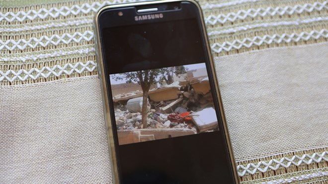 Shams' and Hassan's house, shown in a photo on a mobile phone, that was destroyed in Deir Az Zor [Mersiha Gadzo/Al Jazeera]