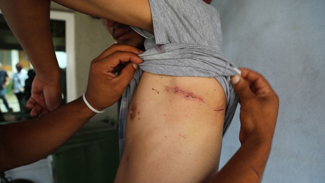A refugee shows his chest injury after being allegedly beaten by Croatian police [Mersiha Gadzo/Al Jazeera]