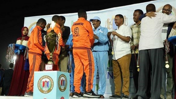 The president was joined by hundreds of citizens who watched the game under floodlights. Local media reports that it is the second successive championship victory for Waberi team which beat Hodan district last year.Farmaajo who skipped the ongoing United Nations General Assembly to attend to pressing political issues at home wore the Somali colours, handed medals and delivered the trophy and a speech at the game.