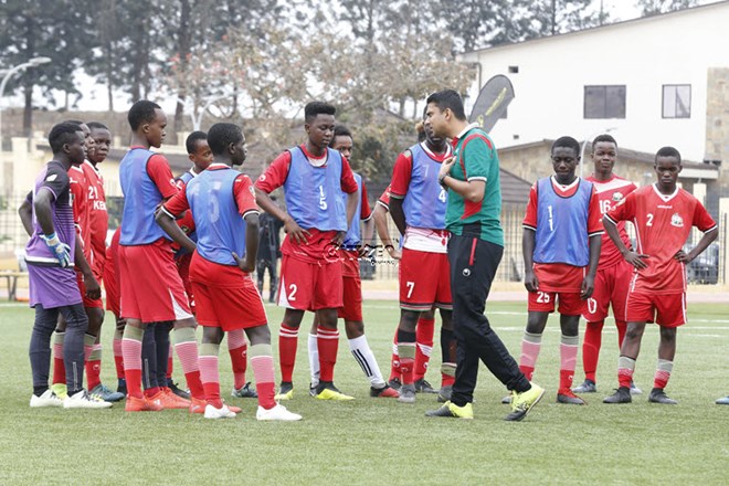 The Kenya U15 National team head coach Sagar Lakhani instructs his charges during training session at Wadi Degla Club in Runda on August 12, 2019. Kenya is preparing ahead of their upcoming CECAFA U15 Championships set to kick off on August 16, 2019 in Eritrea. Photo/Stafford Ondego/Sportpicha