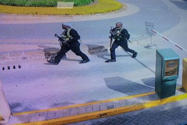 CCTV footage shows Gichunge (left) and his co-attacker walking into the compound of the DusitD2 hotel in Nairobi on January 15, 2019. PHOTO | FILE | NATION MEDIA GROUP