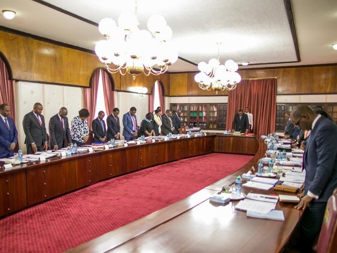 President Uhuru Kenyatta chairs a session of Cabinet at State House, Nairobi. Also present is Deputy President William Ruto./PSCU