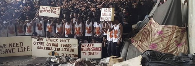 "Our life is worse and terrible from day to day," wrote an Eritrean migrant who is among 700 held in the detention center run by one of Libya's militias out of a complex dominated by a hangar near the western town of Zintan.