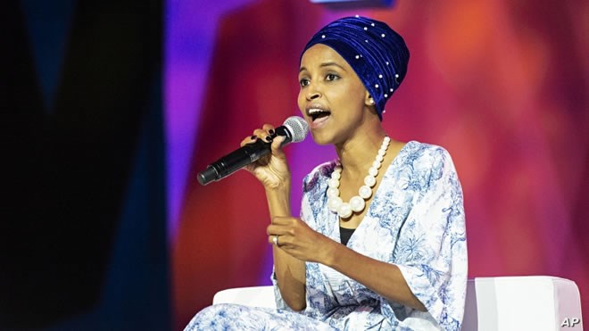 FILE - Rep. Ilhan Omar, D-Minn., speaks at the 2019 Essence Festival at the Ernest N. Morial Convention Center in New Orleans, July 6, 2019.