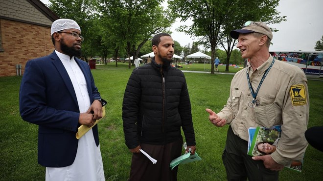 Families celebrating the end of the holy month of Ramadan with an outdoor picnic and bounce houses Tuesday near Lake George were also offered a chance to try their hand at baiting a hook and casting a line.