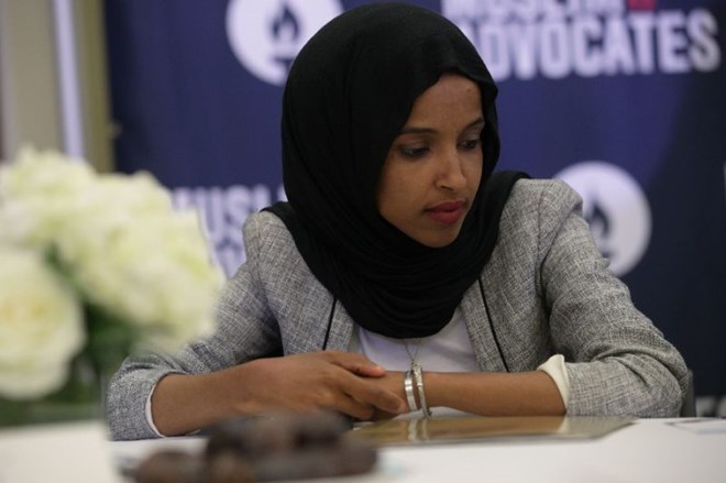 US House Representative Ilhan Omar listens to remarks during a congressional Iftar event on May 20, 2019 (AFP Photo/ALEX WONG)