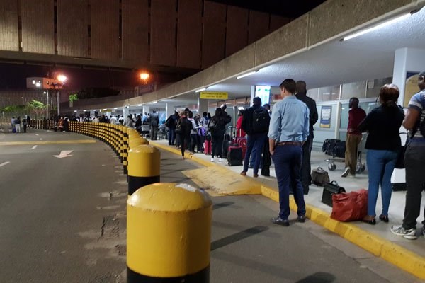 Hundreds of passengers are stranded at JKIA in Nairobi after their flights were disputed on March 6, 2019. PHOTO | COURTESY