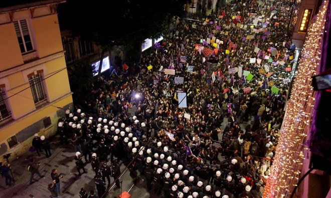 Police try to disperse a march marking International Women's Day in Istanbul, Turkey, March 8, 2019. REUTERS/Kemal Aslan