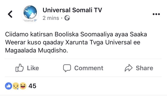 Universal TV posted on their facebook that they were under assault by Somali security forces.