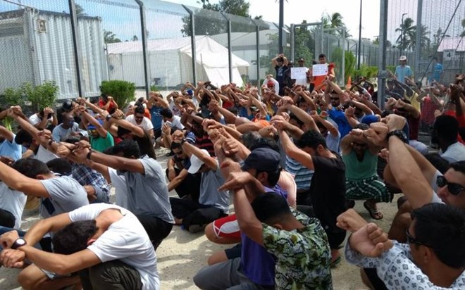 Protest in Mike compound, Manus Island detention centre, 22-8-17 Photo: Supplied