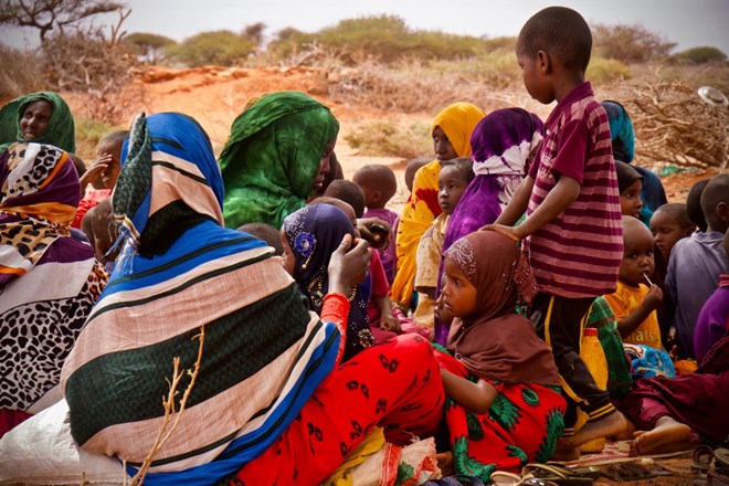Women and children in Dhagahyale village, 54km from Guri Ceel town, wait their turn to see the Somali Red Crescent Society mobile health team. CC BY-NC-ND / ICRC / Mohamed Abdikarim