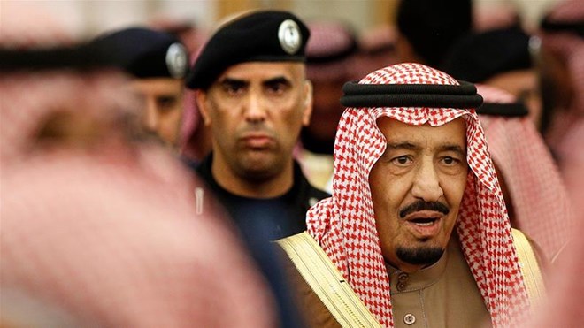 In this file photo, Saudi Arabia's King Salman is guarded by his bodyguard Maj. Gen. Abdulaziz al-Fagham, back ground [Yoan Valat, AP Photo]
