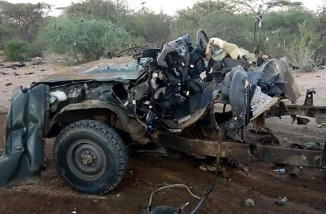 The officers from Harehare GSU Camp were on patrol along the Kenya-Somalia border when their Toyota Land Cruiser ran over the IED suspected to have been planted by Al Shabaab militants.