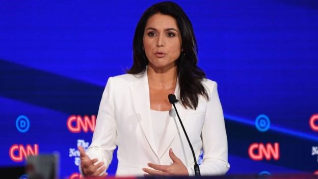 Ms Gabbard is a military veteran and anti-war candidate who has called on the US to stop acting as the world's policeman.