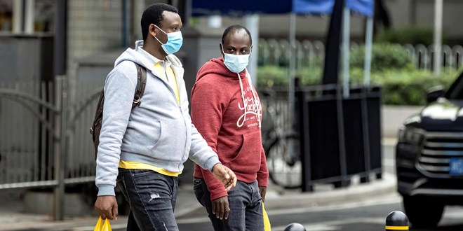 People wearing masks in Guangzhou, Guangdong province. Video posted on social media over the weekend showed people of African descent being evicted, sleeping rough and being refused service in shops © Alex Plaveski/EPA/Shutterstock