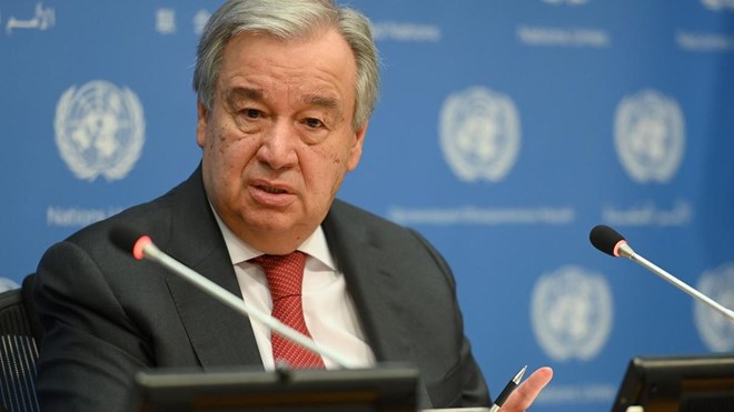 United Nations Secretary General Antonio Guterres speaks during a press briefing at United Nations Headquarters on February 4, 2020 in New York City. AFP