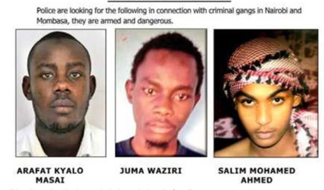 Police on Tuesday released the photos of Arafat Kyalo Masai, Juma Waziri and Salim Mohamed Ahmed, saying they are armed and dangerous.