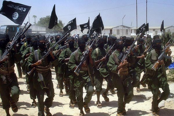 Members of Al-Shabaab at an undisclosed location in Somalia. The US Africa Command said the two terrorists were killed in an air strike. PHOTO | FILE | AFP