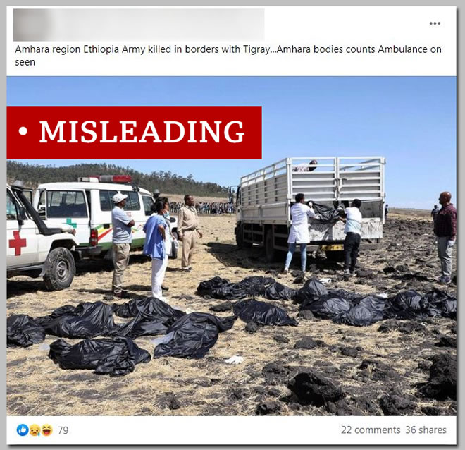 One was said to show body bags near the Tigray region, containing the remains of soldiers from the neighbouring Amhara region.