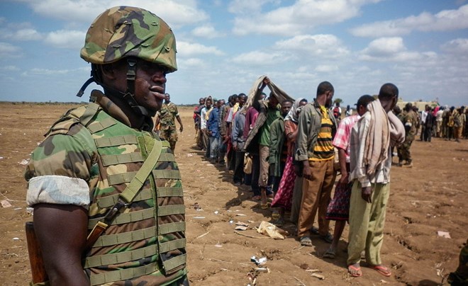 An African Union Mission in Somalia soldier looks on as members of al-Shabaab stand down in Garsale, Somalia on Sept. 22, 2012. Photo credit: AU-UN IST Photo/Abukar Albadri via Wikimedia