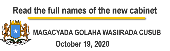 MOGADISHU (HOL) - Prime Minister Mohamed Roble has unveiled a new cabinet retaining ministers from the previous cabinet in key positions, moving some to different dockets and bringing in new faces.