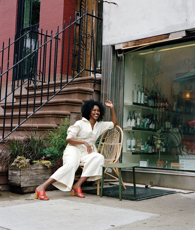 LOCAL TIME Hassan in Brooklyn’s Fort Greene neighborhood, where she lives. “You have to give your audience the credit it deserves by not acting like everything needs to be dumbed down,” she says.
