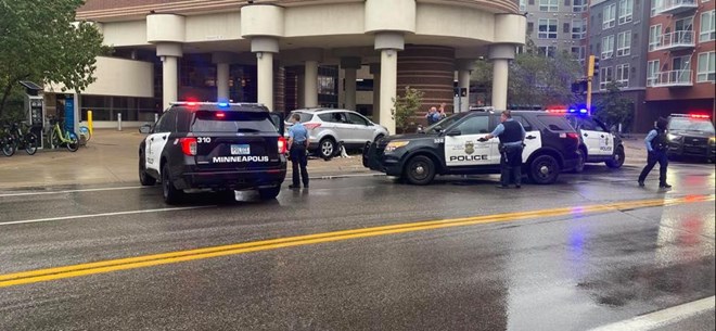 After a brief pursuit, the suspect hit a support column in front of the Courtyard by Marriott hotel on Washington Avenue South. Police took a juvenile boy into custody.