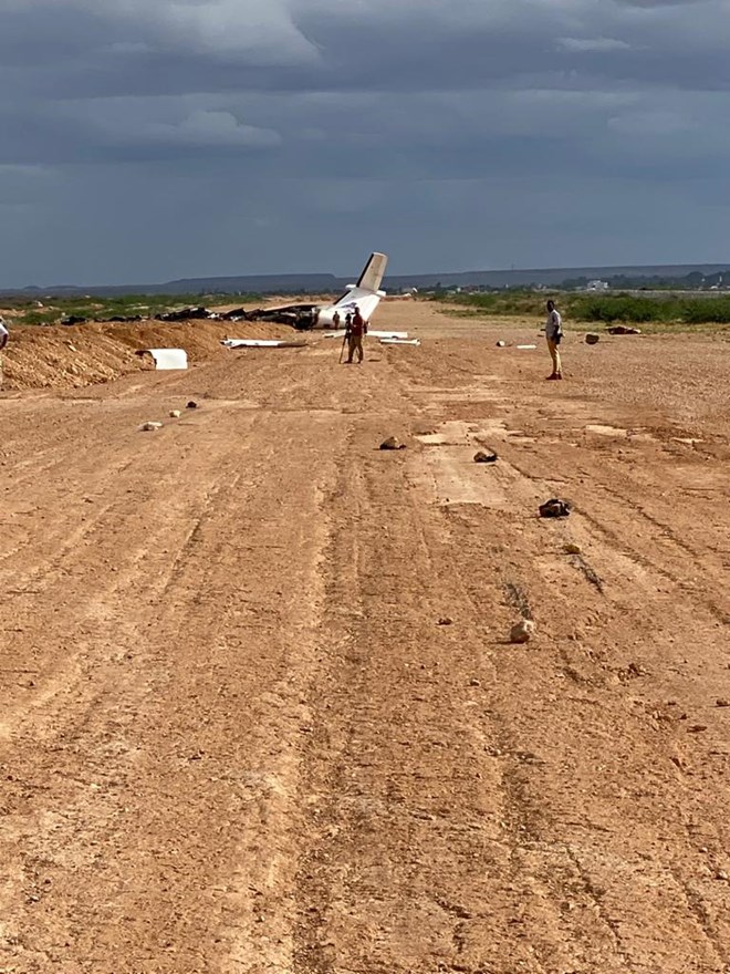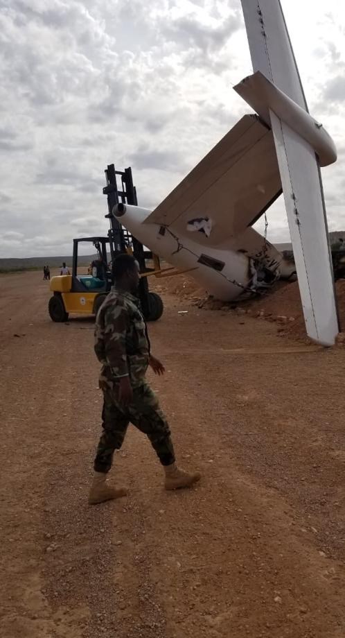The de Havilland Canada DHC-8-400, turboprop plane operated by Bluebird Aviation crashed during landing at Ugas Khalif Airport on July 14 with three occupants - two pilots and one ground engineer - who have survived the accident.