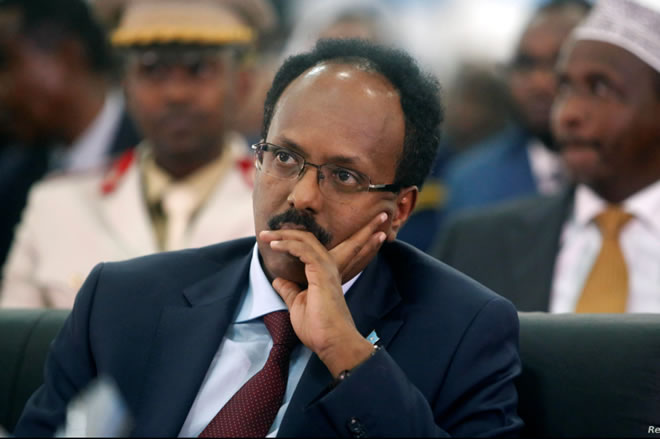 FILE - Somalia's Presdent Mohamed Abdullahi Farmaajo
