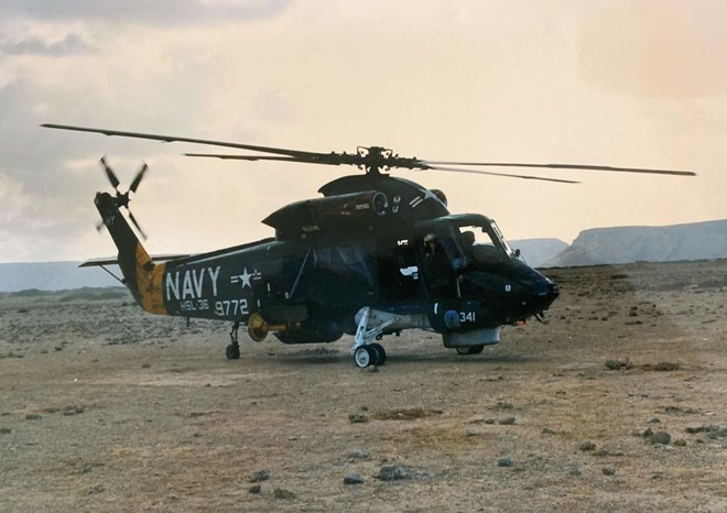 Their helicopter transported survey teams and their equipment from one site to another along the Somali coast. Their Seasprite sucked in blowing sand into both of its turboshaft engines during one of these transfers, rendering them unusable. Their aircraft maintainers had to replace both engines on the beach, which would take about a week to complete.