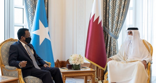 The Amir HH Sheikh Tamim bin Hamad Al-Thani met at the Amiri Diwan on Tuesday morning with President of the Federal Republic of Somalia HE Mohamed Abdullahi Farmajo.