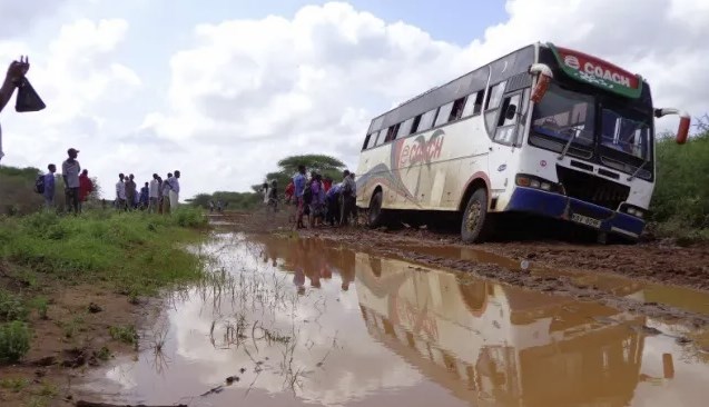 Motorists using Landcruiser trucks and four-wheel drive vehicles have sometimes been forced to spent a night in the bush before reaching Masalani town.Passengers boarding Dek Express commuter bus move from Garissa to Boji where they are dropped and wade through crocodile-infested River Tana15km to Majengo Bridge to catch another Dek express bus waiting passengers on the other side of the river after river Tana burst its banks on Boji side.